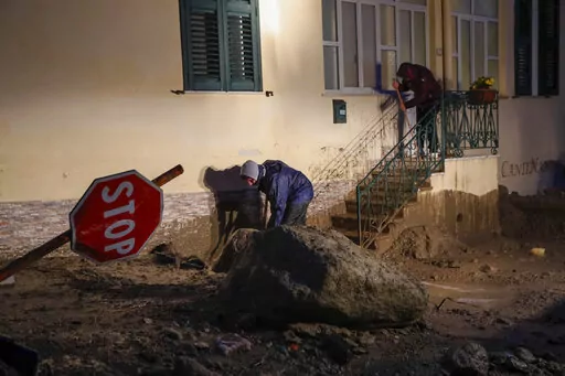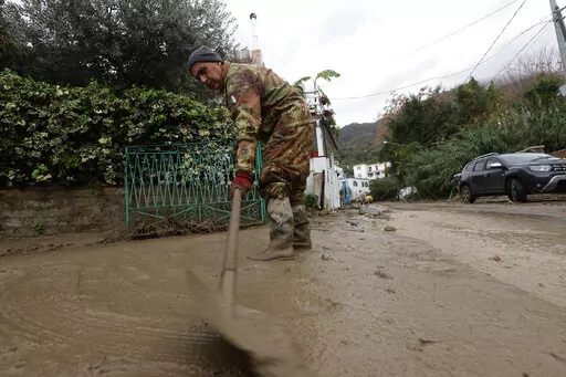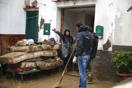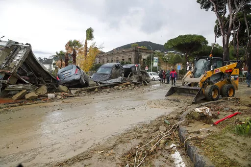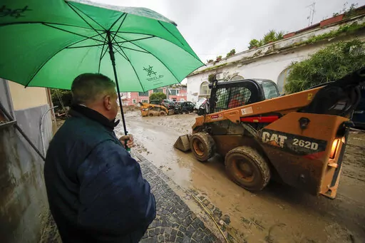 Video from the island showed small bulldozers clearing roads, while residents used hoses to try to get mud out of their homes. One man, identified as Benjamin Iacono, told Sky TG24 that mud overwhelmed three adjacent shops that he owns, completely wiping out his inventory. He estimated damage at 100,000 euros to 150,000 euros ($104,000 to $156,000).