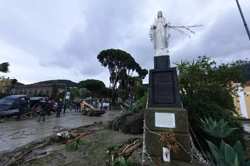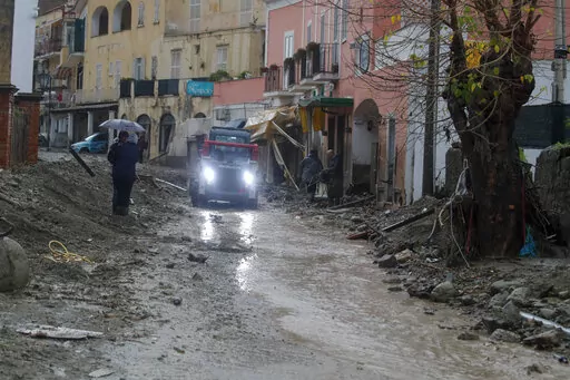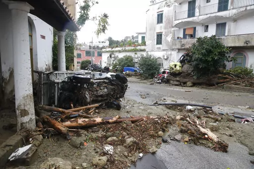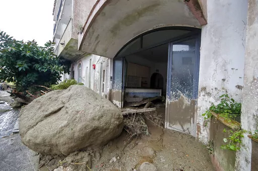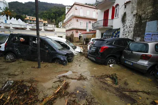 MILAN (AP) — Heavy rainfall triggered a massive landslide early Saturday on the southern Italian resort island of Ischia that destroyed buildings and swept parked cars into the sea, leaving at least one person dead and up to 12 missing.