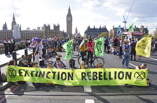 The Extinction Rebellion climate activism group said two Olympic athletes — gold medal-winning canoeist Etienne Stott and Laura Baldwin — were among those protesting Friday. The oil tanker protest was part of mass climate demonstrations Friday that saw hundreds of activists blocking four key bridges across the British capital, causing delays and disruption across central London.
