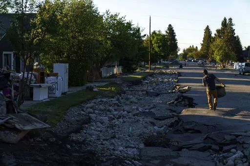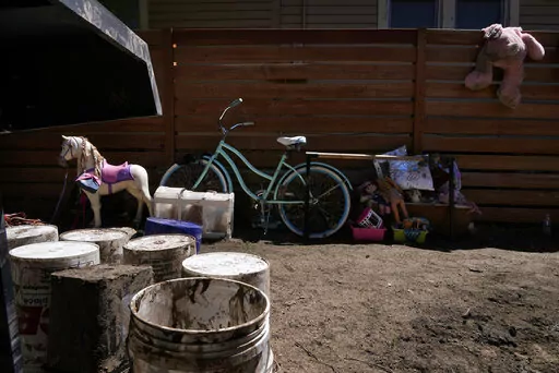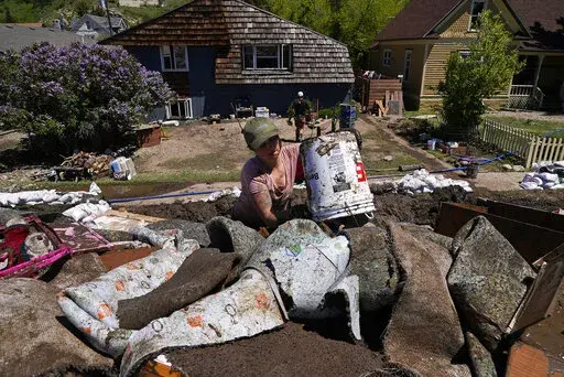 Residents of Red Lodge cleared out muddy and flood-soaked toys and clothing. They hung wet garments on fences. A car parked on the street had tipped into a deep channel carved by waters that flooded the homes. A refrigerator and washing machine were on the sidewalk.