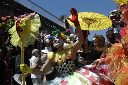 There are Carnival celebrations underway even in small towns. Sleepy, seaside Paraty, a few hours' drive south of Rio, saw hundreds of joyous partyers throw themselves into the silty shallows, emerging gray from the mud and then proceeding to dance and parade on the beach. In Sao Paulo state's countryside, thousands of revelers, families and tourists sang and danced through the colorful, colonial streets of Sao Luiz do Paraitinga to the tune of traditional Carnival marches.