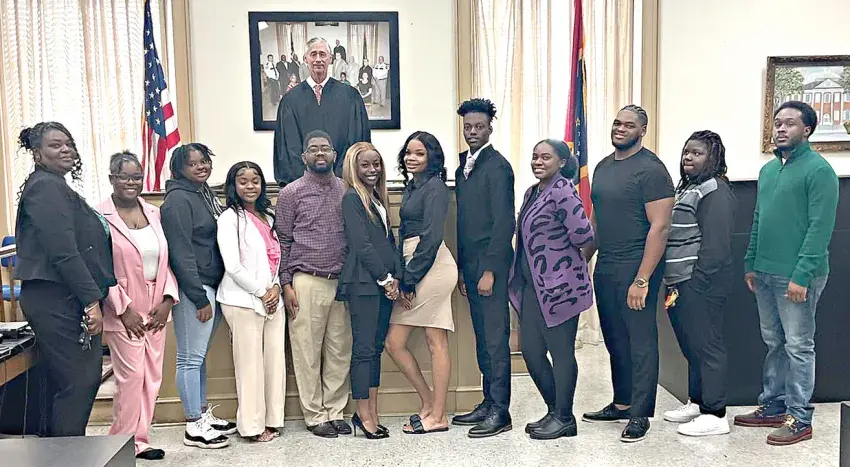 A group of criminal justice students from Coahoma Community College had the opportunity to attend a real-world plea sentence hearing March 6 at the Tallahatchie County Courthouse in Charleston.