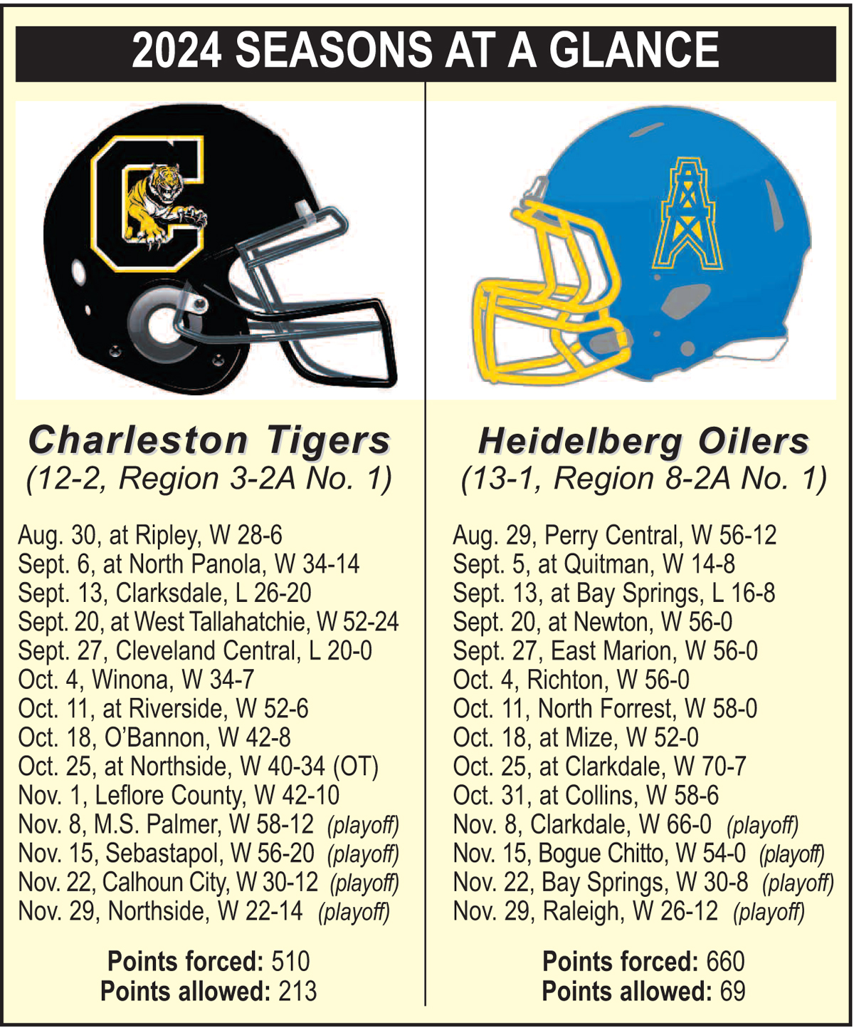 M.M. Roberts Stadium at the University of Southern Mississippi in Hattiesburg is the setting for Saturday afternoon’s Class 2A state championship football game pitting the Tigers of Charleston High School against the Oilers of Heidelberg High School. Kickoff is scheduled for noon.