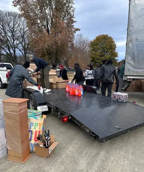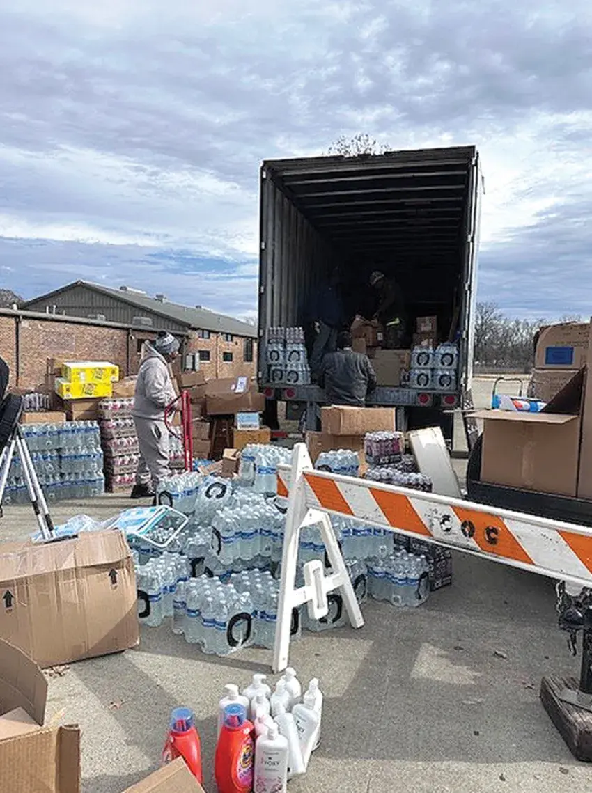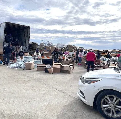A tractor trailer load of items was presented to local residents during the giveaway.