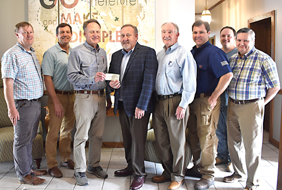 Thanks to the generosity of the people of Tallahatchie County and surrounding areas, City on a Hill Ministries achieved its goal of raising $25,000 for the Charleston Recovery Center interior build-out. These donations, which were raised between Feb. 1 and April 15, 2023, were matched by the Lawrence Davis Trust of Nashville, Tennessee. Shown presenting a check for $25,000 to Executive Director Ken Watson, fourth from left, is board member and Trust representative Ken Gregory, third from left. Pictured from left are board members John Ball Burnett, Jimmie Stennett, Gregory, Watson, Ed Hargett, Jimmy Fly, Lance Tennyson and Ray Clolinger. Not pictured are board members, Mayor Sedrick Smith and Perry Herron. At the time of the presentation, Gregory announced that the Davis Trust would again offer to match any contributions raised before June 15, 2023, on a dollar-for-dollar basis up to another $25,000. Anyone wishing to contribute to the nonprofit, 501(c)(3) Recovery Center is urged to contact Watson or any board member. All donations are fully tax-deductible. (Photo by Dana Clolinger)