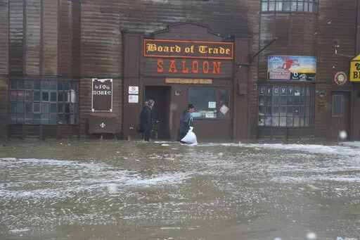 Alaska Gov. Mike Dunleavy on Sunday identified five communities — Hooper Bay, Scammon Bay, Golovin, Newtok and Nome — as being greatly impacted by a combination of high water, flooding, erosion and electrical issues. Nome, where one home floated down a river until it was caught by a bridge, was among the many reporting road damage after recording tidal surges 11.1 feet (3.38 meters) above normal.