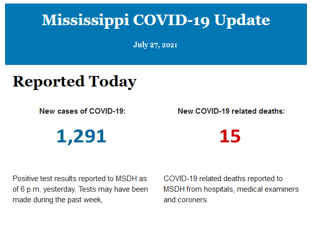 Listed below is the daily COVID-19 update for the state of Mississippi.