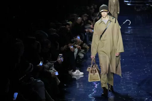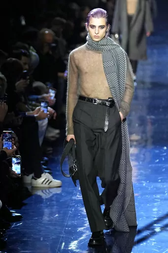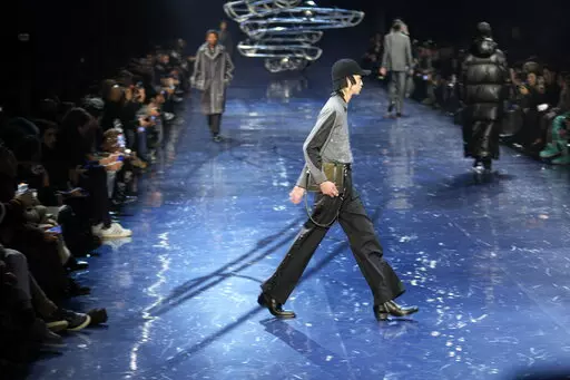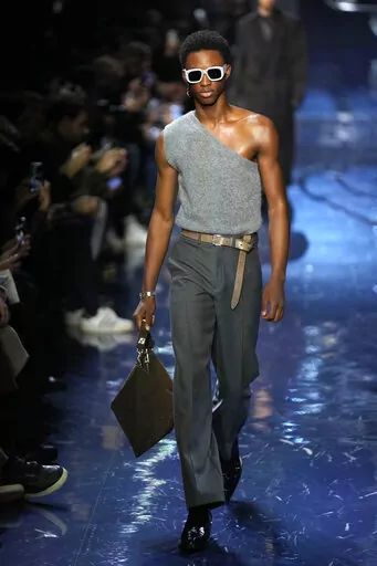 MILAN (AP) — Milan is ready to party, with menswear shows for next spring and winter focused on nighttime tailoring with playful accents. Think sparkles and glitter, fun silhouettes that invite shadow dancing, and sexy peeks at skin with tailoring tricks once reserved for the female wardrobe.