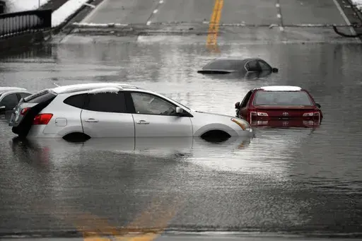 Water submerged cars and buildings in Kentucky and mudslides blocked roads in Virginia late Saturday into Sunday. Both states were under flood warnings, along with Tennessee and Arkansas.