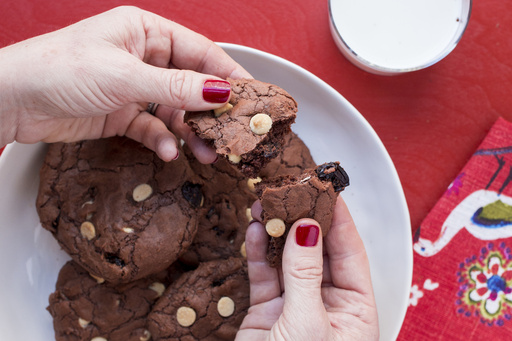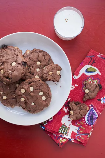 Big Chewy Brownie Cookies with Dried Cherries and White Chocolate Chips