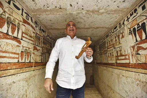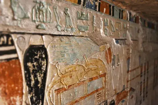 CAIRO (AP) — Egypt on Saturday displayed recently discovered, well-decorated ancient tombs at a Pharaonic necropolis just outside the capital Cairo.
