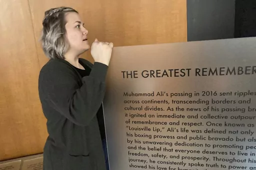 Visitors will first see an acrylic panel surrounded by more than 1,000 silk roses — symbolizing the flowers that admirers tossed onto the hearse as Ali's funeral procession made its way to Cave Hill Cemetery in Louisville, said Goldy, the Ali Center's senior manager of curation and collections. An inscription on the panel recounting those days says Ali's passing “sent ripples across continents, transcending borders and cultural divides.”
