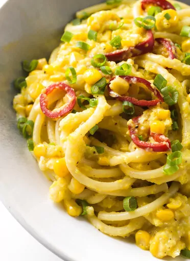 Bucatini with Sweet Corn and Scallions