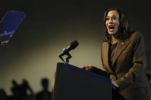 LAS VEGAS (AP) — Vice President Kamala Harris poked at Donald Trump over crowd sizes, his refusal to debate again and his privileged background on Sunday as she hauled in campaign cash in California and held a raucous rally at the same Nevada venue where the Republican nominee had appeared just two weeks ago.