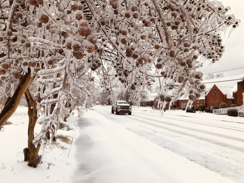 The storm moved in late Friday and early Saturday and brought several waves of freezing rain and sleet that continued into Sunday, sometimes mixed with snow in some areas. The storm was followed by subfreezing temperatures.