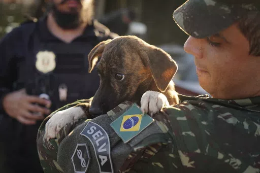CANOAS, Brazil (AP) — Hundreds of volunteers have set up a makeshift dog shelter in an abandoned, roofless warehouse in the city of Canoas, one of the hardest hit by floods in southern Brazil's Rio Grande do Sul state.