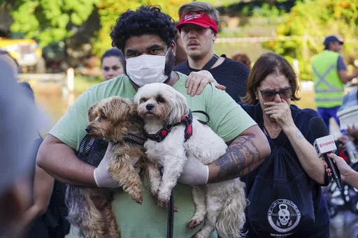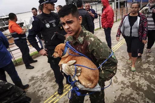 Animal protection groups and volunteers have shared images of difficult rescues and heartwarming scenes of pets reuniting with their owners on social media. One video that went viral showed a man crying inside a boat, hugging his four dogs after rescuers went back to his home to save them. The images have spurred Brazilians to send donations and brought veterinarians to the region.