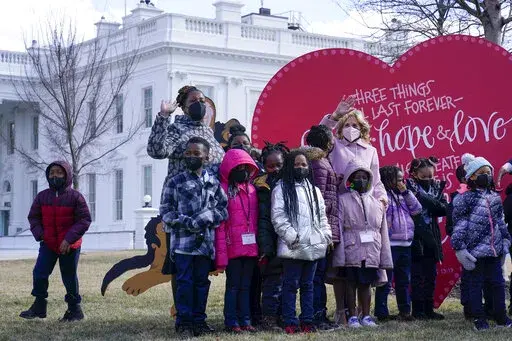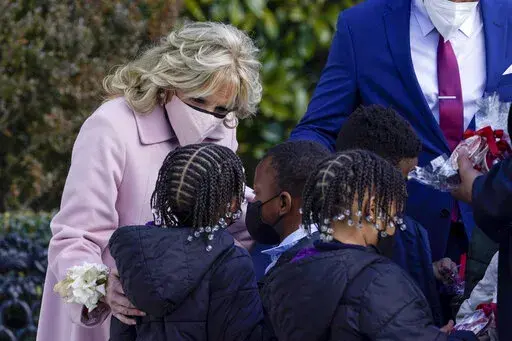 WASHINGTON (AP) — Jill Biden has turned Valentine's Day into a lesson for second graders.