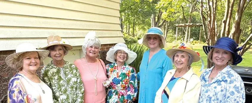The Charleston Arts and Revitalization Effort (CARE) held its Kentucky Derby watch party on the afternoon of May 3 at the home of Patti and Ken Gregory. Attendees enjoyed an afternoon filled with activities reminiscent of Churchill Downs, and dinner by The Oaks at Sherin Farms. Above, from left, Jeanie Hobson, Judy Jennings, Jennifer Speir, Nell Bloodworth, Glenna Callender, Isabelle Hays and Elaine Sayle show off their festive Derby hats. (Photo by Dana Clolinger)