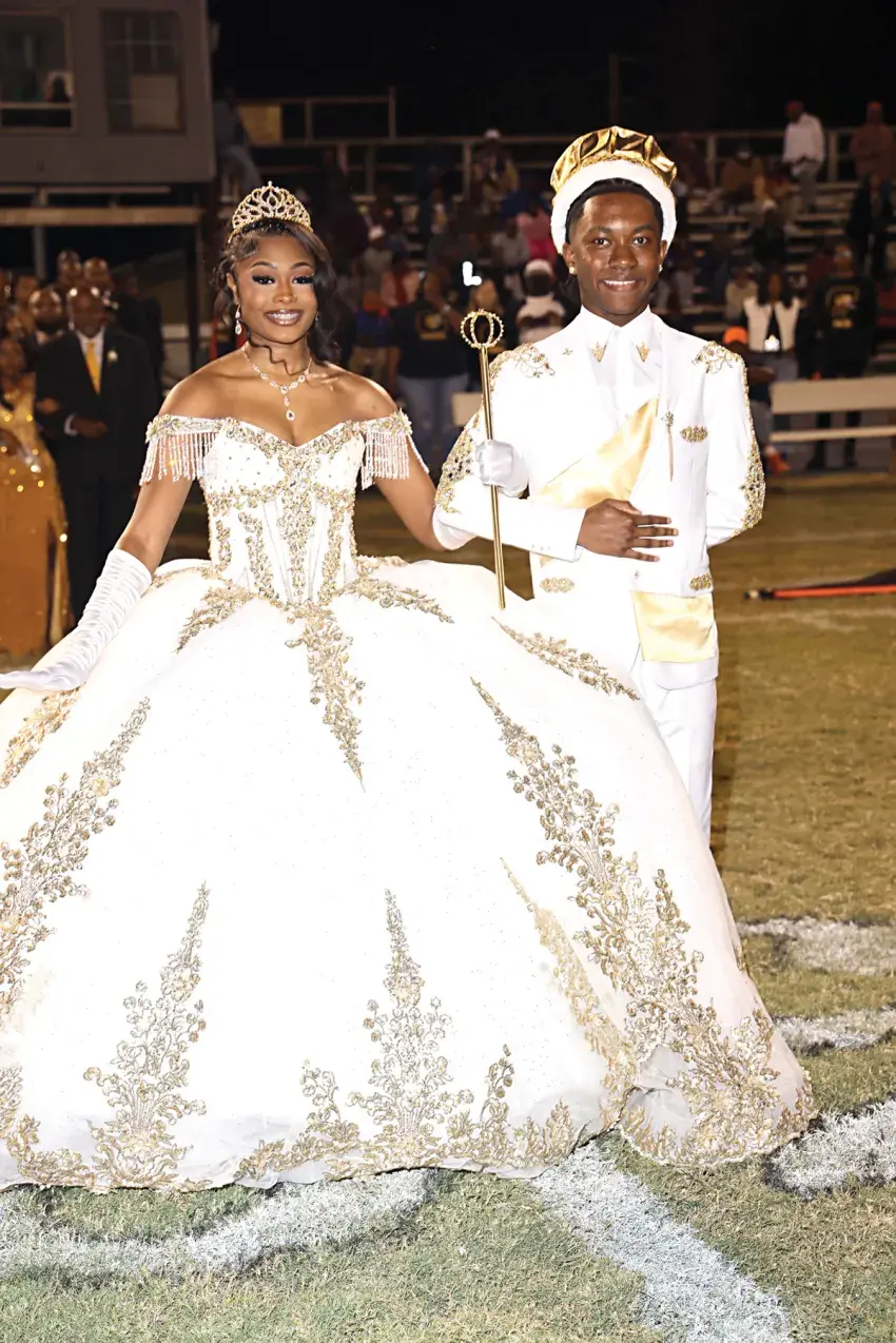 Charleston High School recently held its first coronation. During the event, various members of school royalty were crowned. Pictured are Miss Charleston High School Jada Leavy, left, and Mr. Charleston High School Anthony Davis, who were revealed with the homecoming court on Friday, Oct. 24. (Photo by NeNe’s Photography)