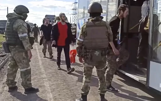 Seven buses carrying an unknown number of Ukrainian soldiers evacuated from the Mariupol steel plant were seen arriving Tuesday at former penal colony No. 120 near Olenivka.
