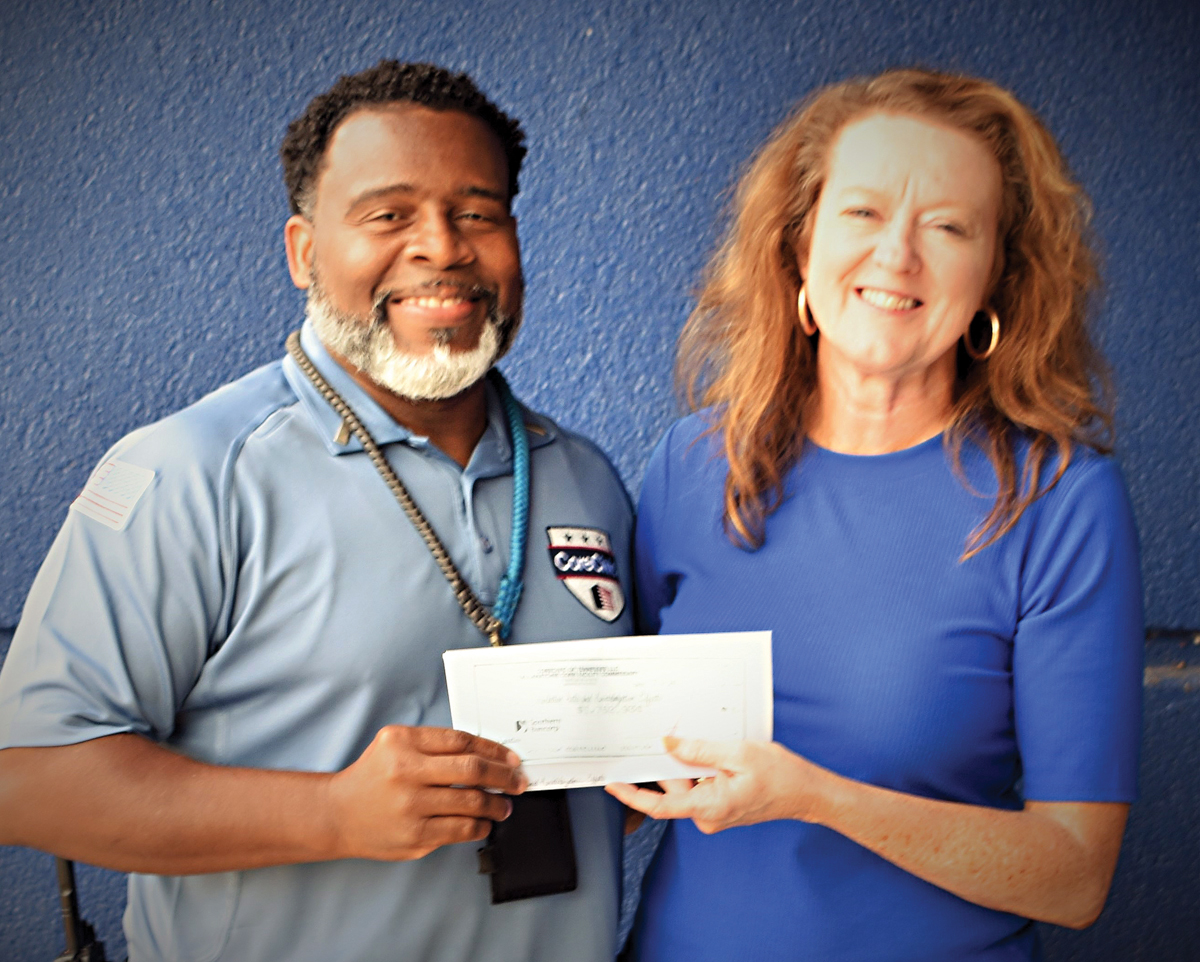Kenneth Jones, assistant shift supervisor and community team leader for CoreCivic at the Tallahatchie County Correctional Facility in Tutwiler, presented the check.