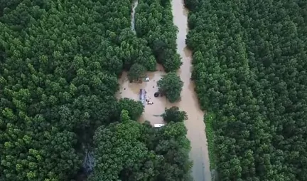 Drone footage shared on the broadcast network WeatherNation illustrated the extent of the flooding in parts of Tutwiler.