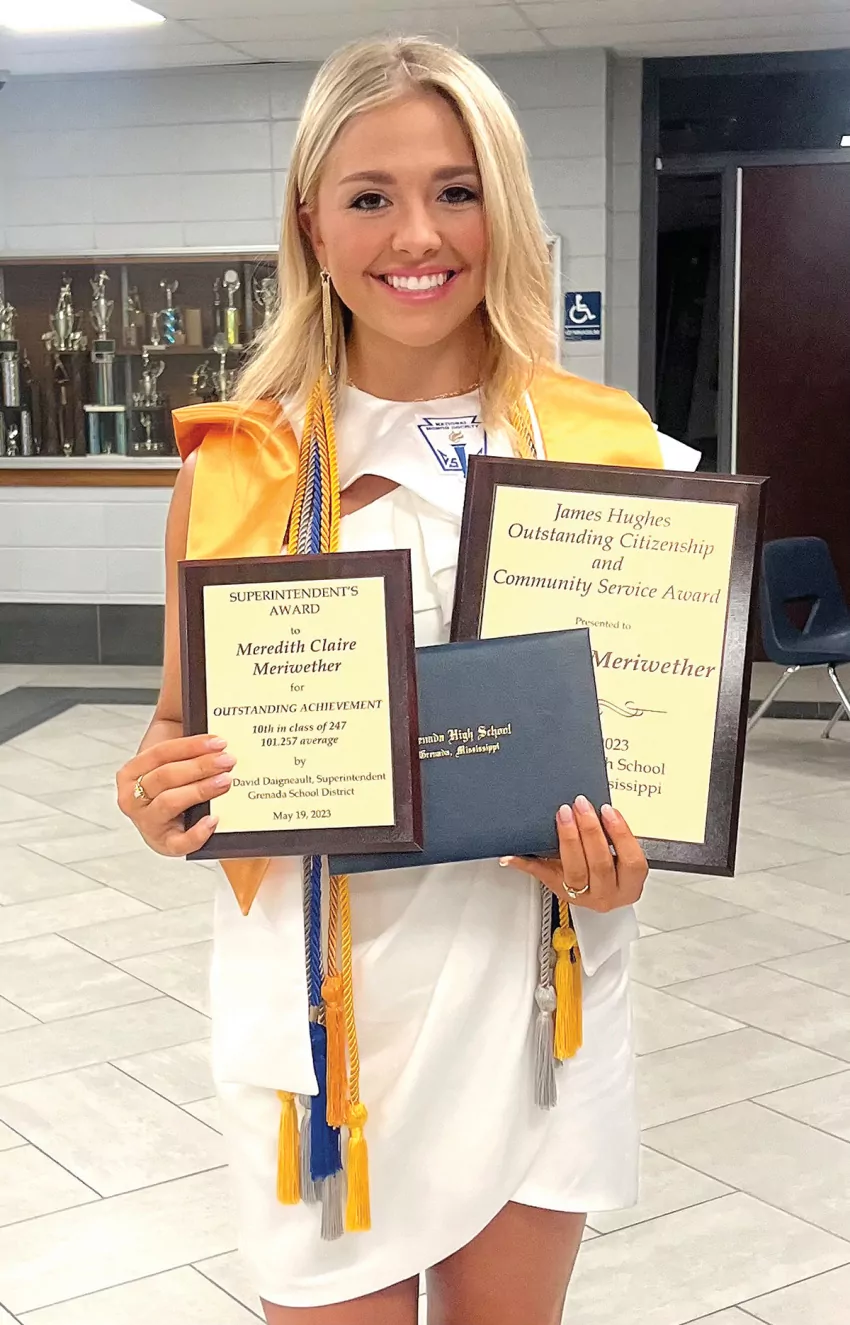 Meredith Claire Meriwether of Tallahatchie County recently graduated with distinguished honors from Grenada High School.