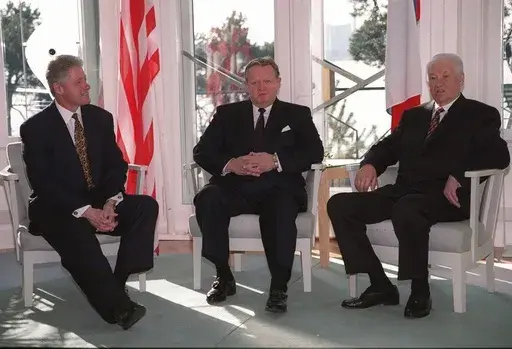 During his presidency, Ahtisaari hosted Russian President Boris Yeltsin and U.S. President Bill Clinton at a U.S.-Russia summit in the Finnish capital, Helsinki, in March 1997.