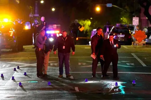 Six people were killed and 12 wounded outside bars located a few blocks from the state Capitol in a gunfight involving at least five shooters from rival gangs, Sacramento police said. More than 100 rapid-fire gunshots echoed through the streets as terrified patrons ran for their lives and others were hit by bullets. Police said they identified at least five gunmen, but there may have been more. Police said at least two gangs were involved.