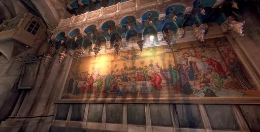 To accurately render details of Jerusalem in the virtual space, developers scanned the holy sites and a large physical model made in the 19th century that is on loan at the city’s Tower of David Museum. Users can hover over this digital model leading to full-scale scans of the city entering through different gates that lead to the Cathedral of Saint James and the Church of the Holy Sepulchre, the Western Wall, the Dome of the Rock and the Al-Aqsa Mosque.