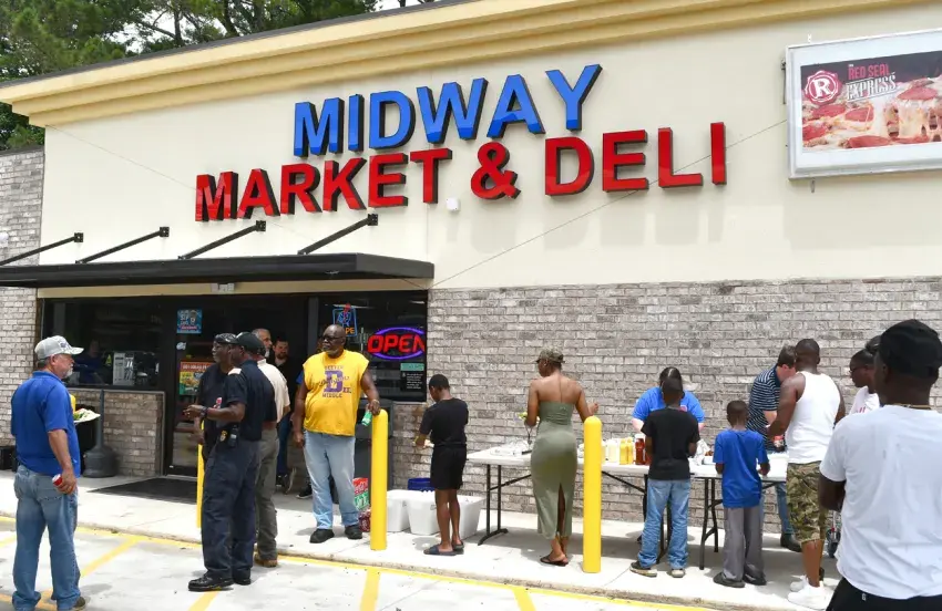 Midway Market & Deli, located on Highway 32 east of Charleston, celebrated its grand reopening Friday, June 13, just shy of a year after the popular country convenience store was destroyed in an early-morning fire.