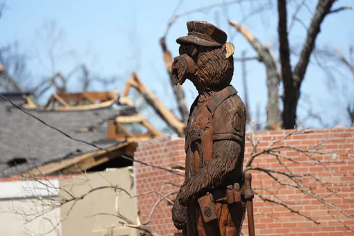 The destruction can seem unquantifiable to weary residents who have been working alongside a network of volunteers every day since the tornado to sort through mounds of rubble. Some homes were lifted off the ground by their foundations. A bear statue commemorating Roosevelt's visit still stands in the heart of downtown, but the twister left its mark on hundreds of structures, including schools, clinics and the local hospital.