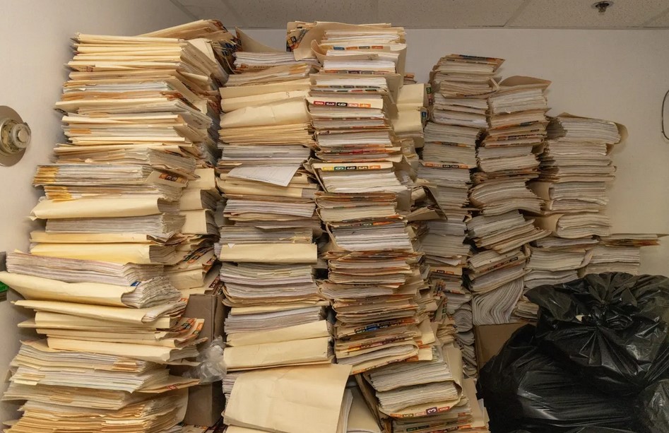 Patient records are stored at the former Patients’ Choice Medical Center of Humphreys County in Belzoni, Miss., on Friday, Nov. 17, 2023. Credit: Eric J. Shelton/Mississippi Today