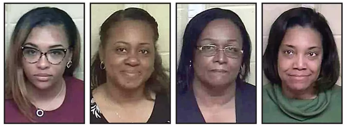Tallahatchie County Jail booking photos from Tuesday, March 2, 2021, show, from left, Tameka McIntyre, Tawanda Smith Shannon, Margaret McIntyre Simmons and Sandy Frieson Smith.