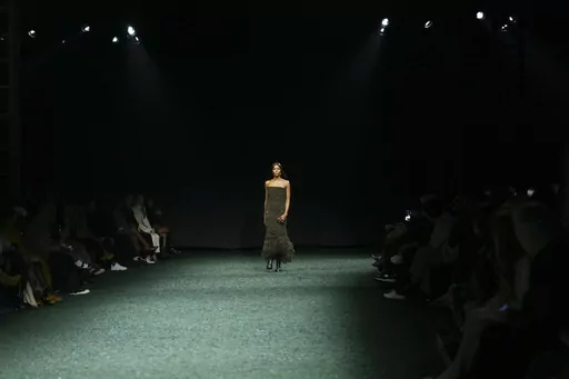 The British fashion house showcased its latest designs Monday at London Fashion Week to a soulful Amy Winehouse soundtrack interspersed with a woman’s voice saying “I love London ... the smell of London when it rains.”