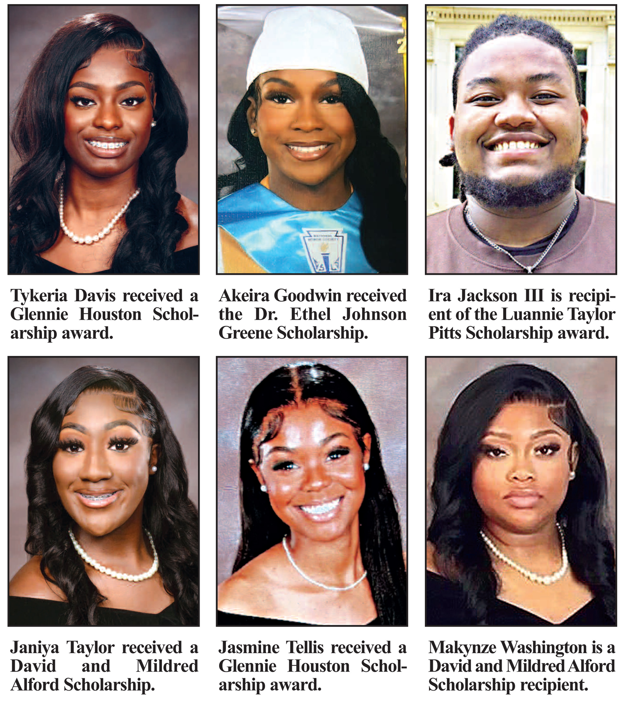 The second Houston award in the amount of $1,000 is offered to Tykeria Davis, a 2025 graduate of Charleston High School. Miss Davis has applied to and been accepted to University of Mississippi, Oxford, where she plans to pursue a degree in Pre-Health Biological Science with a future goal of becoming a medical entrepreneur.