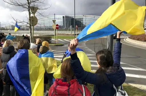 As the leaders prepared for their virtual summit, pro-Ukraine demonstrators rallied outside NATO’s headquarters in Brussels. Dozens of Ukrainians living in the Belgian capital chanted “Putin, Terrorist,” “Close the Sky Down” and “Stop Putin, Stop War.”