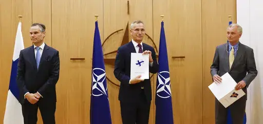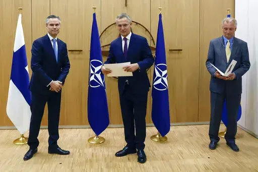 “I warmly welcome the requests by Finland and Sweden to join NATO. You are our closest partners,“ Stoltenberg said. “We all agree that we must stand together, and we all agree that this is an historic moment which we must seize.”