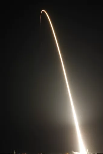 SpaceX's first-stage booster returned to Cape Canaveral several minutes after liftoff, an extra treat for the thousands of spectators gathered in the early-morning darkness.