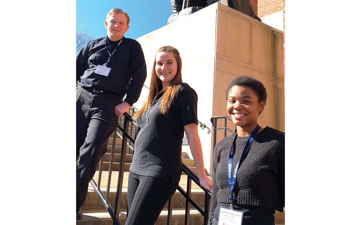 From left are Matthew Wilson, Elizabeth Willard and Jasmine Tellis, Charleston High School Band members who participated in the Mid-South Honor Band at the University of Mississippi.