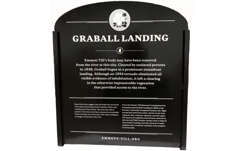 IN THE PHOTO: This new Emmett Till memorial sign will be dedicated at Graball Landing during a public ceremony on Saturday, Oct. 19. (Photo courtesy of Patrick Weems)