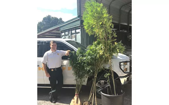 IN THE PHOTO: Tallahatchie County Sheriff Jimmy Fly stands alongside marijuana plants discovered during recent aerial surveillance in the county. (Photo special to The Sun-Sentinel)
