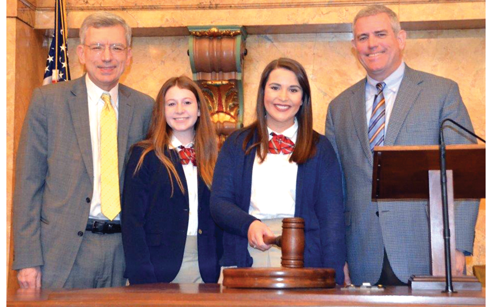 IN THE PHOTO: From left, state Rep. Tommy Reynolds is pictured with pages Abbi Roark and Caroline Williamson, and House Speaker Philip Gunn. (Photo special to The Sun-Sentinel)