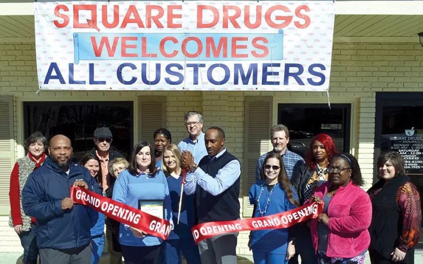 Pictured at the event (from left) are Connie McCool, Justin Gammage, Melissa Rodgers, Lloyd Sandifer, Jones Sandifer, pharmacist-owner Angela Bailey Rowsey, Brenda Turner, Victoria Rowsey, Mike Fox, Smith, Marie Dally, Eric Brown, Vanisha Powell, Ingrid Keglar and Rosanne Brown.