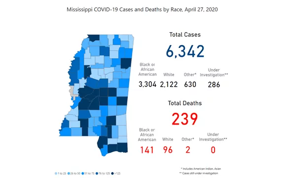 The new statistics bring the total number of COVID-19 cases in the state since March 11 to 6,342, with 239 deaths. MSDH updates its map and statistics each morning with test results from the previous day.