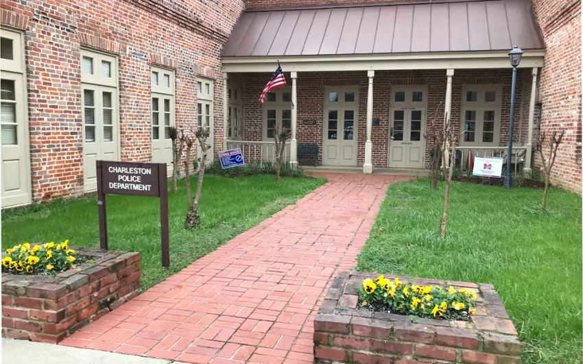 IN THE PHOTO: The exterior of the Charleston City Hall courtroom is seen in this Feb. 20, 2020, view of the City Hall courtyard. (Photo by Clay McFerrin)