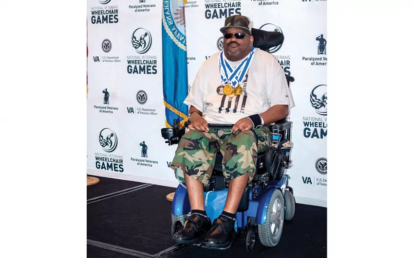 IN THE PHOTO: Bruce Sanders sports four medals he won at the National Veterans Wheelchair Games. (Photo special to The Sun-Sentinel