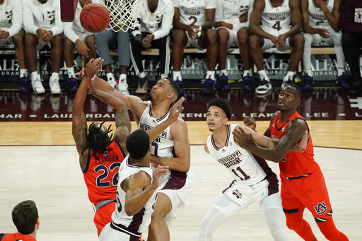 The Bulldogs missed all 13 attempts from 3-point range while Auburn was 10 of 26 behind the arc. Mississippi State did outrebound the Tigers 50-32, including 21 offensive rebounds. Andersson Garcia finished with a career-best 13 rebounds for the Bulldogs and added eight points.