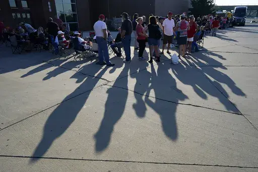 The crowd spent hours waiting outdoors to enter the Trump event, despite sweltering heat uncommon for early October. It was a stark contrast to the roughly 200 who attended a campaign stop in suburban Des Moines Saturday by former United Nations Ambassador Nikki Haley, who has gained renewed interest in Iowa since the first two Republican presidential debates.